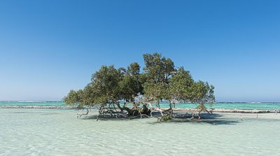 Known for its sea turtles and dugongs. Kite-surf site El Naaba Lagoon is separated from the open sea by a coral reef.
